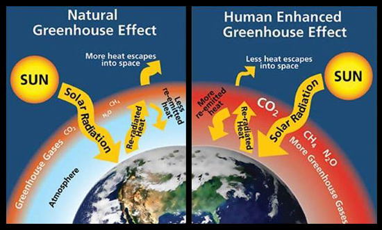 CO2 is a greenhouse gas which traps infra red radiation and concentrations are higher than they have been for 20 million years and some 30% higher than before the industrial revolution. According to the IPCC these increases in CO2 levels probably explain the +.6 +-.2 temperature increases that have occurred in the last century[23]